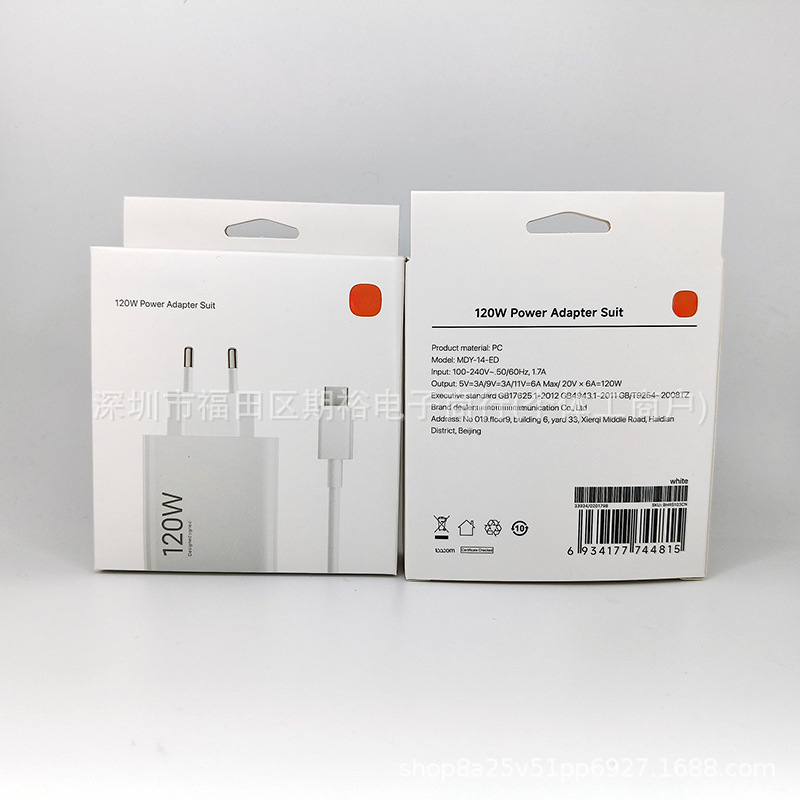 Xiaomi 120W 充電器ツーインワンパッケージ化された窒化ガリウム高速充電ヘッドデータケーブル EU セットパッケージボックスに適しています