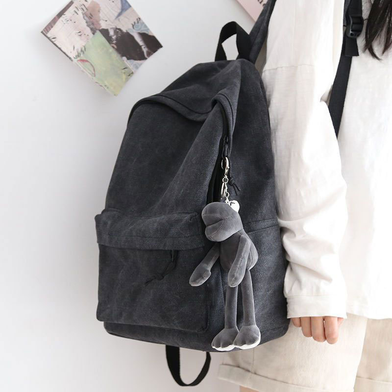 耐磨耗キャンバスの純色の大容量リュックサック女性2025新型百合カバン男高校生旅行リュックサック男