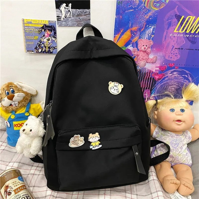 Ins日系少女かばん女子韓国版中学生かわいい純色バックパック高校学生大容量