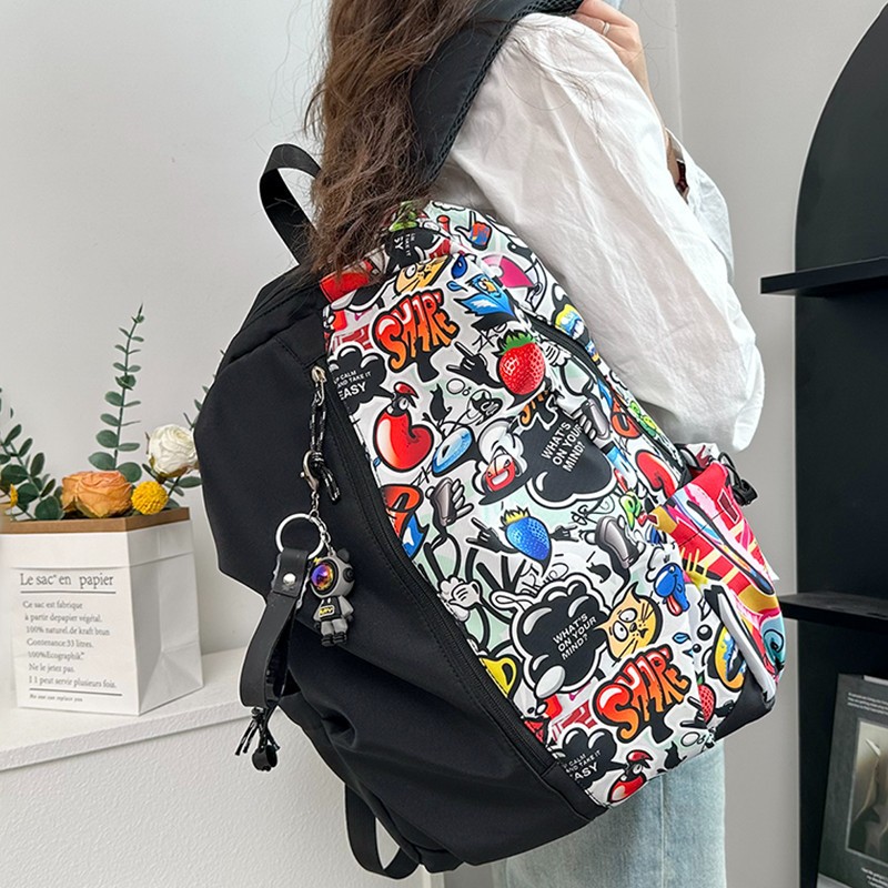 クロスボーダー 2025 新韓国ファッションバックパック落書き漫画トレンディな大容量中学生女子学生スクールバッグ