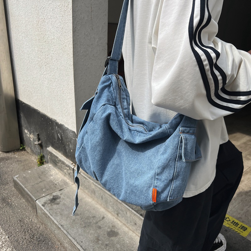 斜めショルダーバッグ女子2024新型ファッションシンプルデニム郵便バッグ男子学生シングルショルダーバッグins潮牌リュックサック