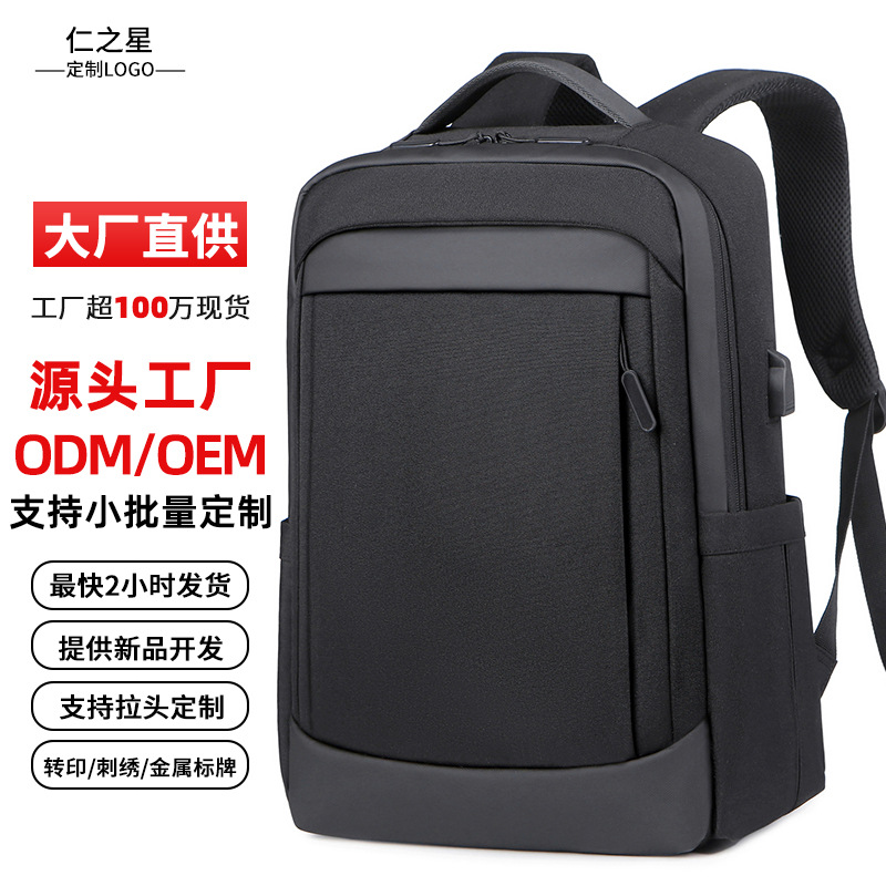 新しいクロスボーダービジネスメンズバックパックカジュアルシンプル短距離旅行通勤プリントロゴ既製コンピュータバッグ