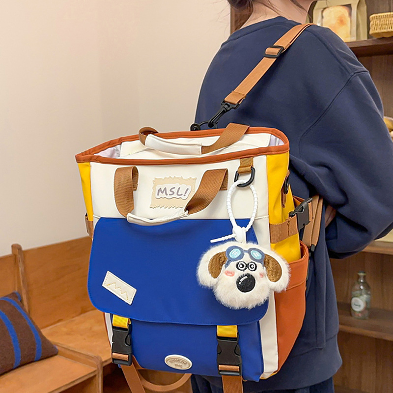 ドーパミン色合わせシングルショルダーバッグ女子学生授業補習カバン多機能大容量トートバッグ男