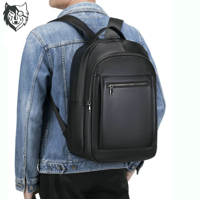 新しい黒のソフトレザーカジュアルメンズバックパックトレンディでクールな大容量本物の牛革アウトドアメンズバックパックオートバイバッグ
