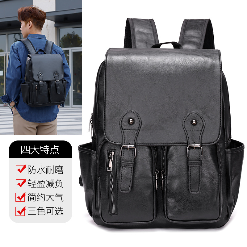 クロスボーダーメンズビジネスランドセルレトロPUファッションコンピューターバックパック純色シンプルアウトドア旅行学生カバン