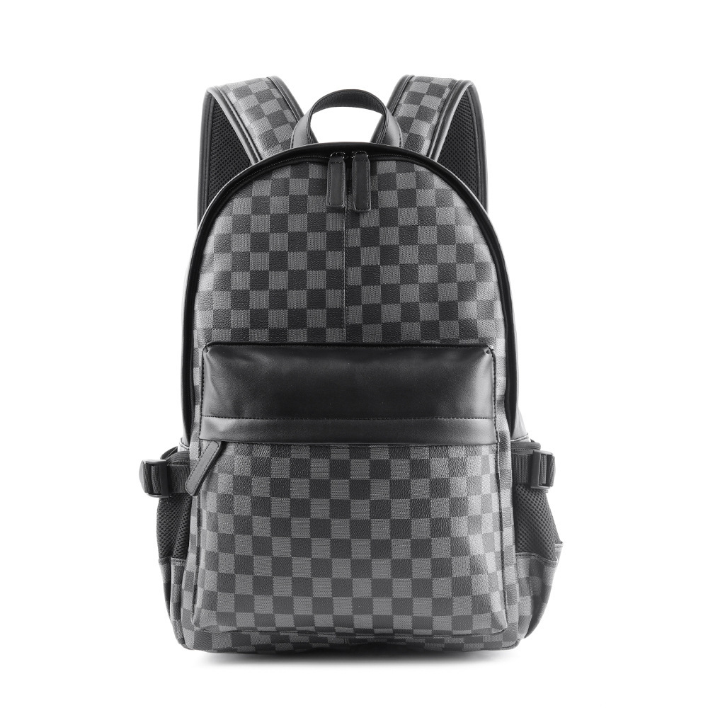 卸売スポット新しいメンズバックパックチェック柄レザーバックパック大学生バッグビジネスコンピュータバックパック