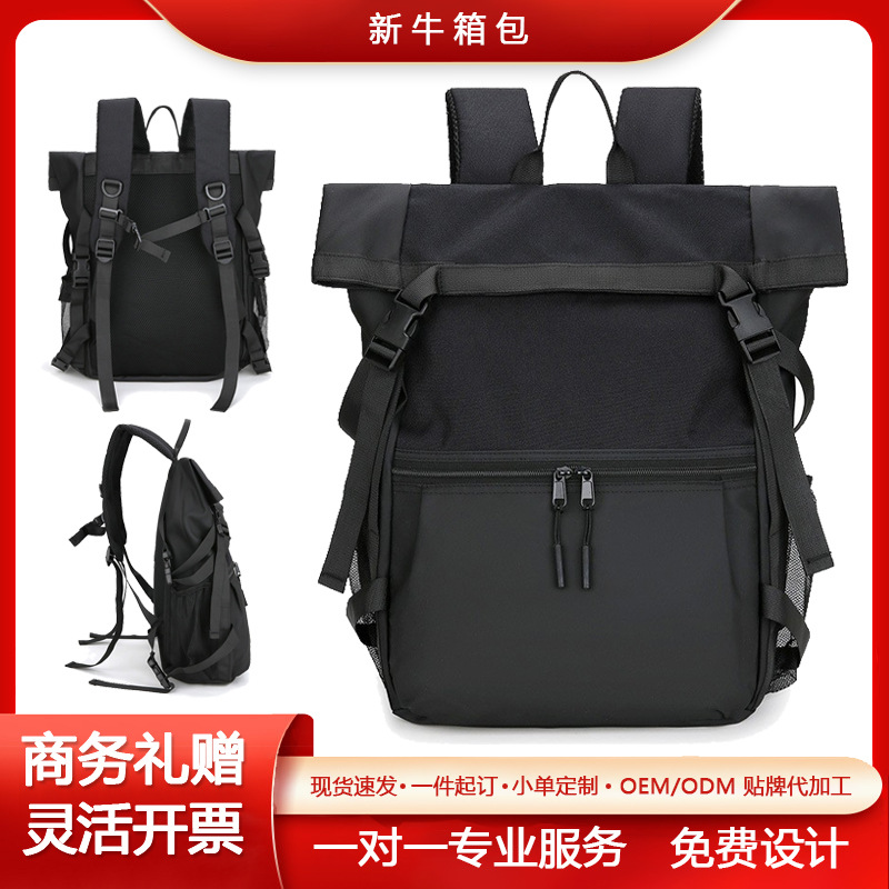 クロスボーダー巻き口バッグ男性大容量レジャー旅行通勤リュックサックビジネスオフィス軽量耐摩耗性パソコンバッグ