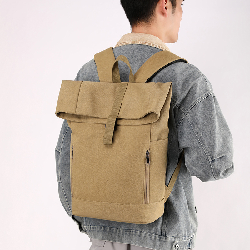 リュックサック男性大容量巻き口リュックサックファッション個性出張旅行カバン高級感大学生カバンクロスボーダー
