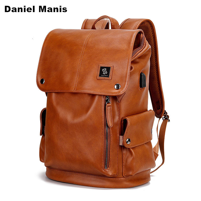 レトロ小リュックサック学院風リュックサック男性PU皮質カジュアル大容量リュックサック