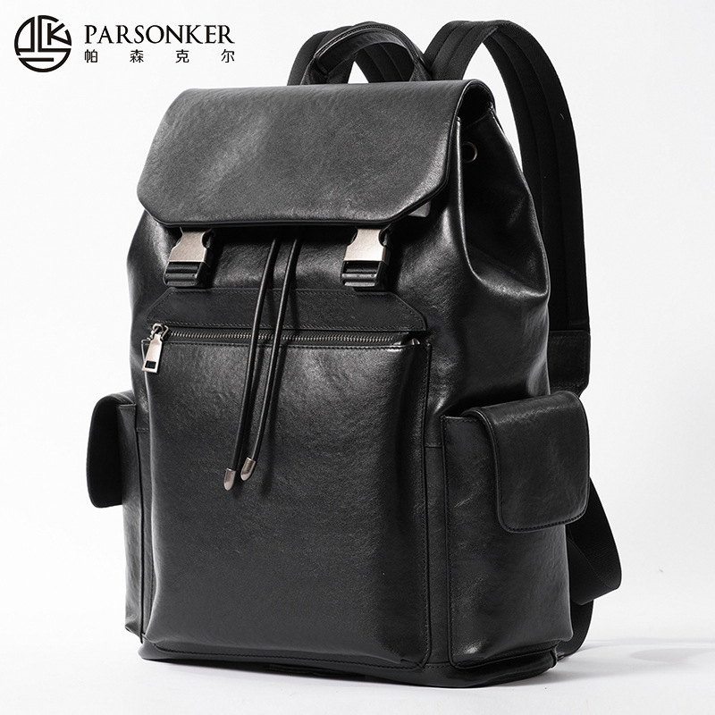 トップ層牛革バックパック黒色ソフトレザーカジュアル男性バッグファッション多機能バックパック屋外機関車バッグ卸売り