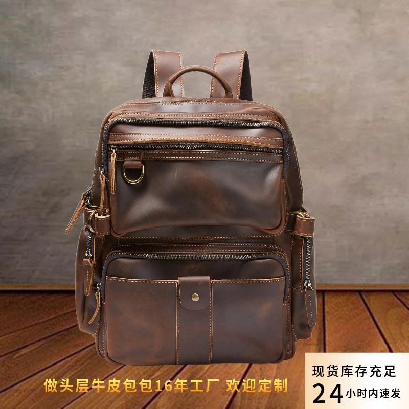 狂馬皮戸外注レジャー旅行リュックサック大容量女性出張リュックサック男性用本革旅行カバン