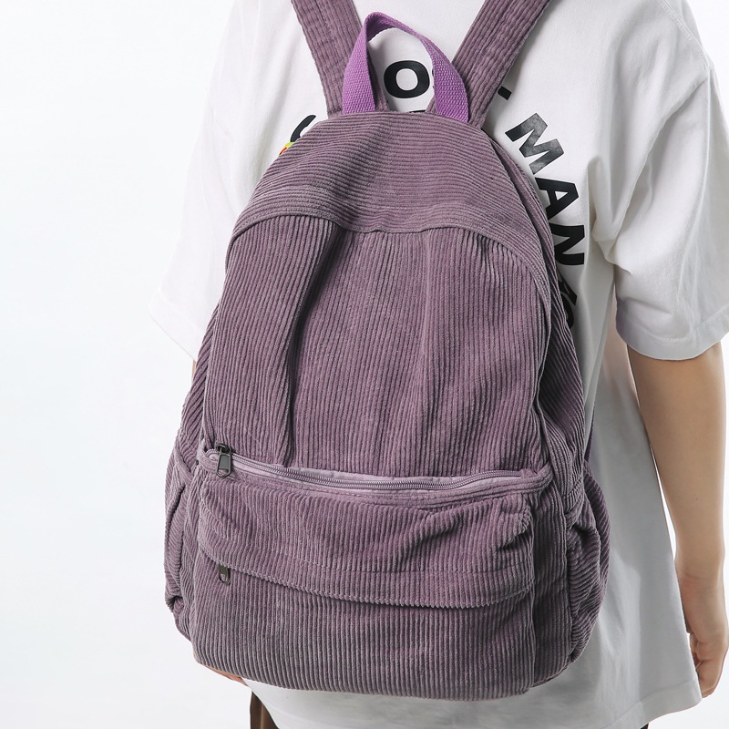 日本のシンプルなカバンの女性のコーデュロイの純色のランドセルの韓国版の高校の大学生の純色のファッションはカジュアルなカバンの男性を掛けます。