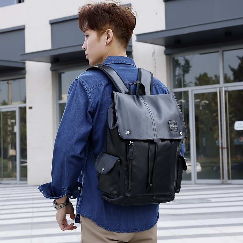 クロスボーダー卸売メンズカジュアルリュックサック男性のノートパソコンのカバンpu皮リュックサック韓国版大容量