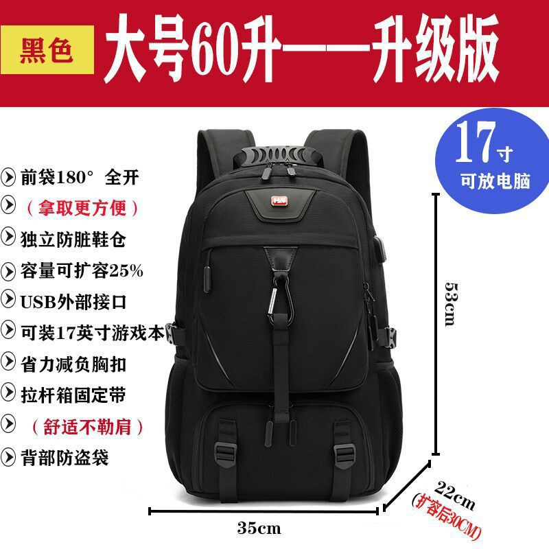 超大容量ブラックアウトドア登山レジャーバッグ高級感旅行出張登山荷物バッグ防水リュックサック