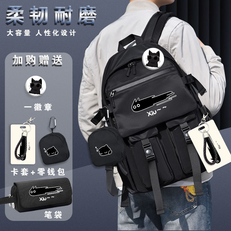 黒猫カバンシンプル大容量リュックサック学生中学高校大学パソコンバッグファッション男性旅行