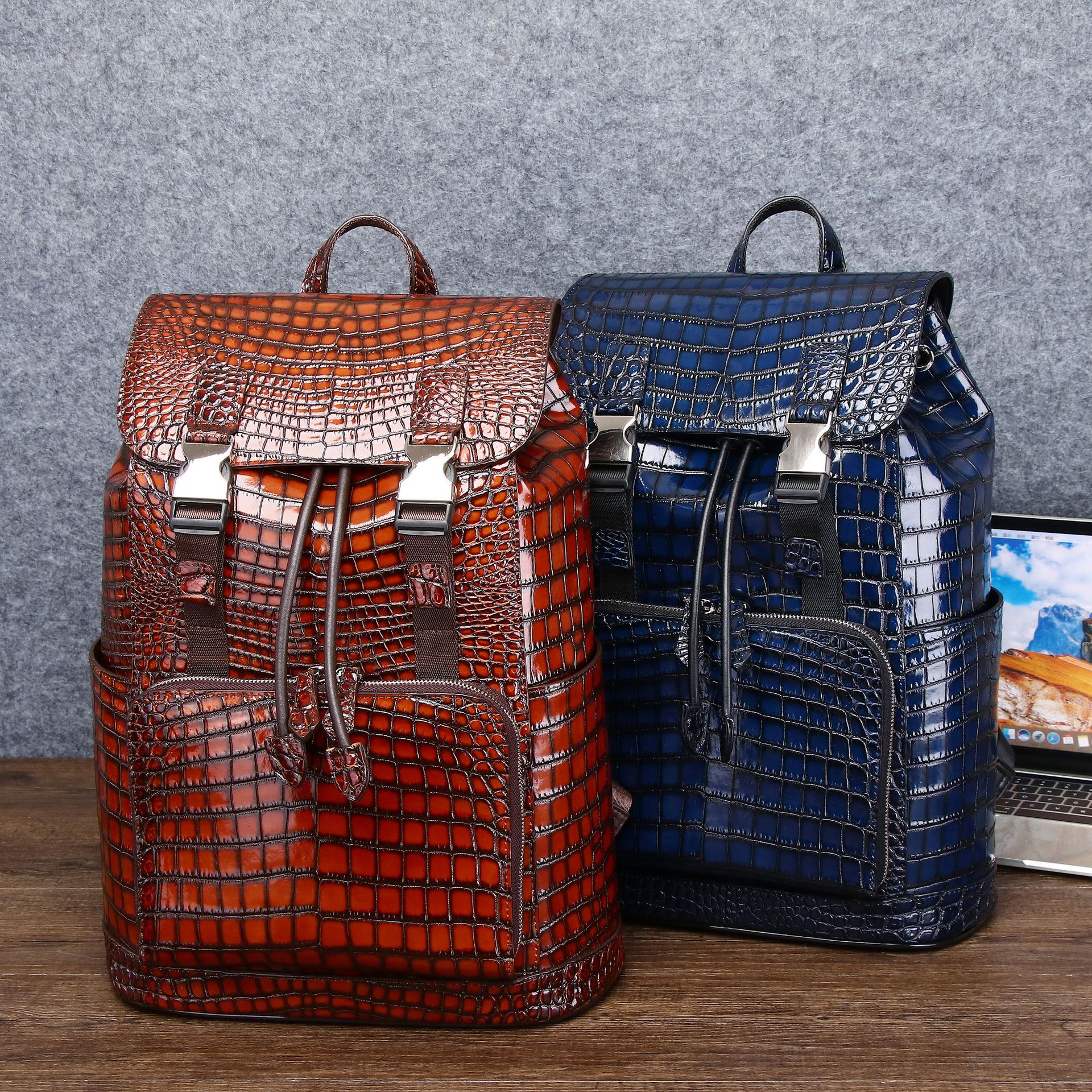 新しい色拭きハイライトワニ腹紋男性ランドセル大容量ファッションバックパック旅行バッグアウトドア男性バッグ潮