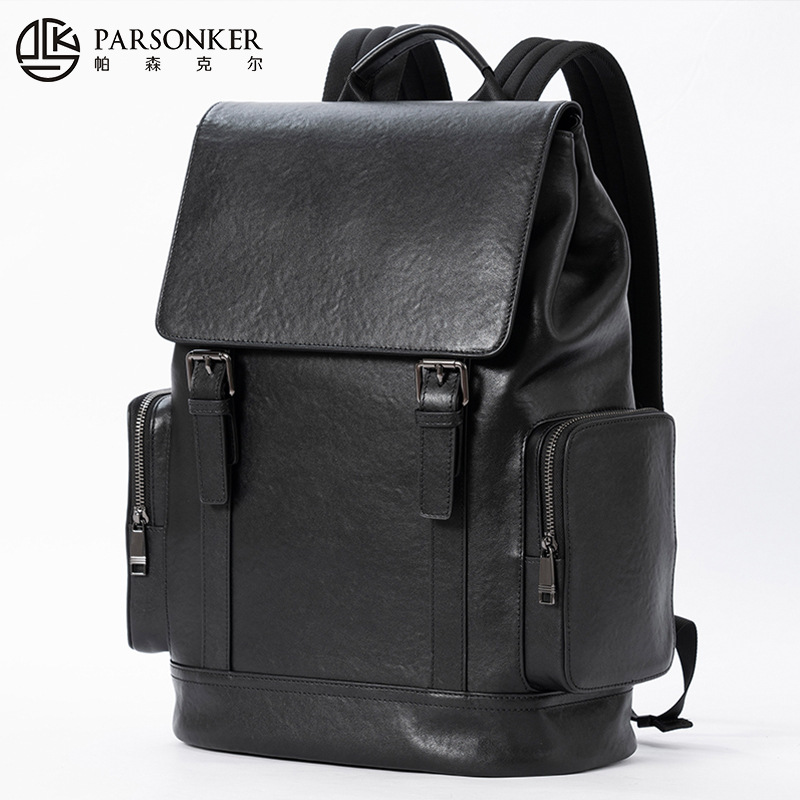 メンズ本革リュックサックシンプル通勤パソコンリュックサック植なめ牛革大容量フリップカバーリュックサック定型バッグ