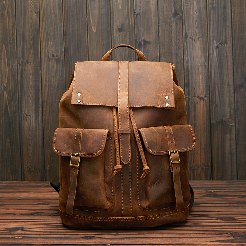 クロスボーダー一級牛革欧米風メンズ本革バックパック大容量旅行用16inchパソコン対応クレイジーホースレザー製ショルダーバッグ