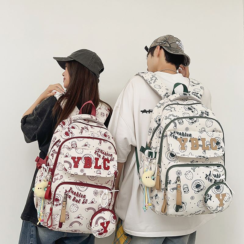 新しいカップルカジュアルバックパック大容量ナイロンプリント撥水屋外男性と女性の学生スクールバッグ卸売
