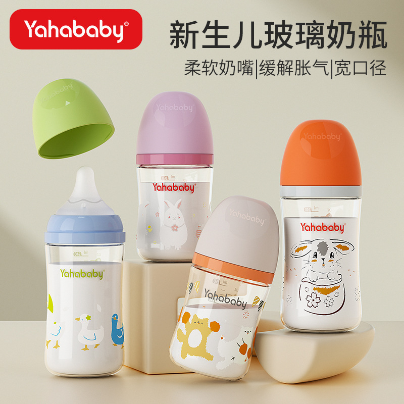 Yahbaby彩色高ホウ素シリコンガラス哺乳瓶初生乳児哺乳瓶は母乳の膨張防止を真似て高温消毒できる