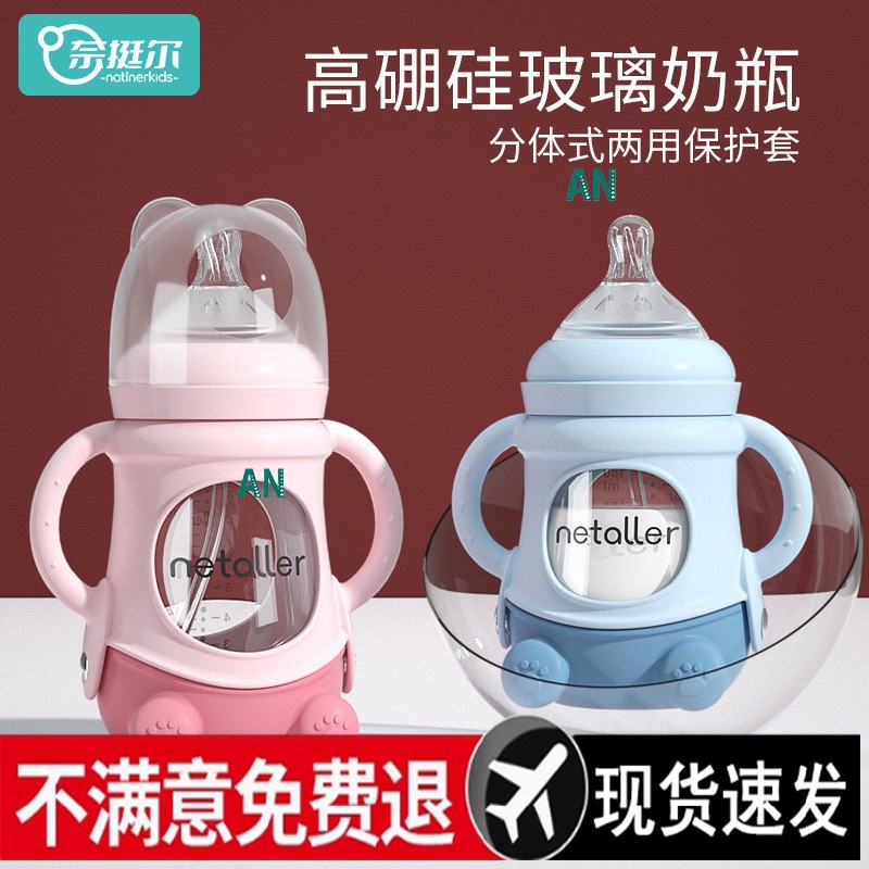 新生児抗疝痛広径ガラスボトル 0-6 ヶ月 1 歳半新生児落下防止ストローボトル