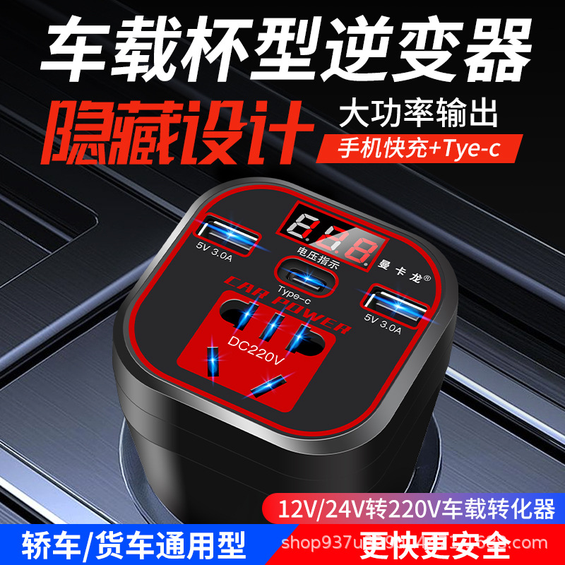 車載インバーター12v 24v回転220v家庭用電源変換器多機能自動車トラックコンセント充電器