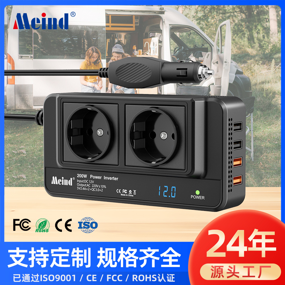 meind工場直販200W車載インバーター電源タップインバーター12Vから220V欧州規格急速充電QC3.0
