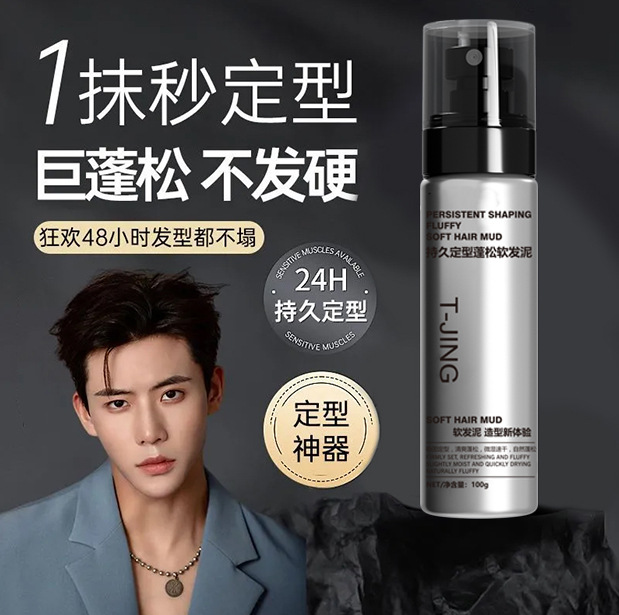 T-JING ソフトヘア泥持続スタイリングマットナチュラルふわふわメンズスタイリングヘアワックスヘアジェルスタイリングスプレー