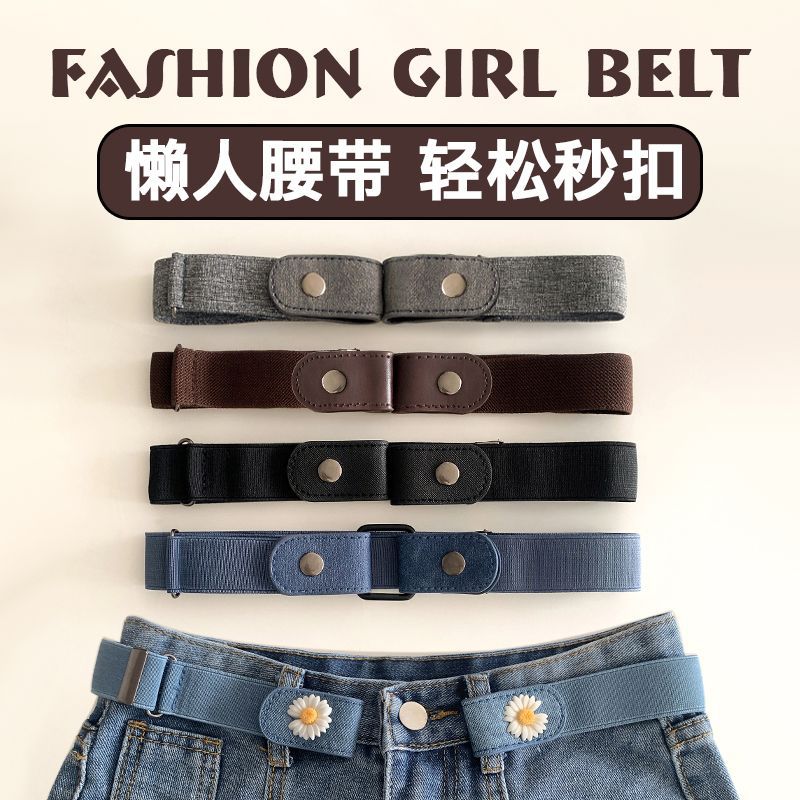 ジーンズベルト怠け者ベルト無痕弾力男百合ステルス緩みレディースパンチング防止飾りインスタ風