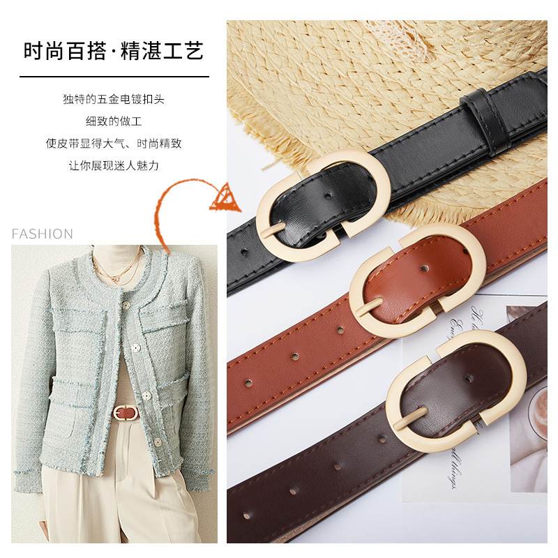 レディースピンバックルレザーベルト、本革細ベルト、インス風、夏、カジュアル、万能、ジーンズベルト、女性用レザーベルト、おしゃれで万能