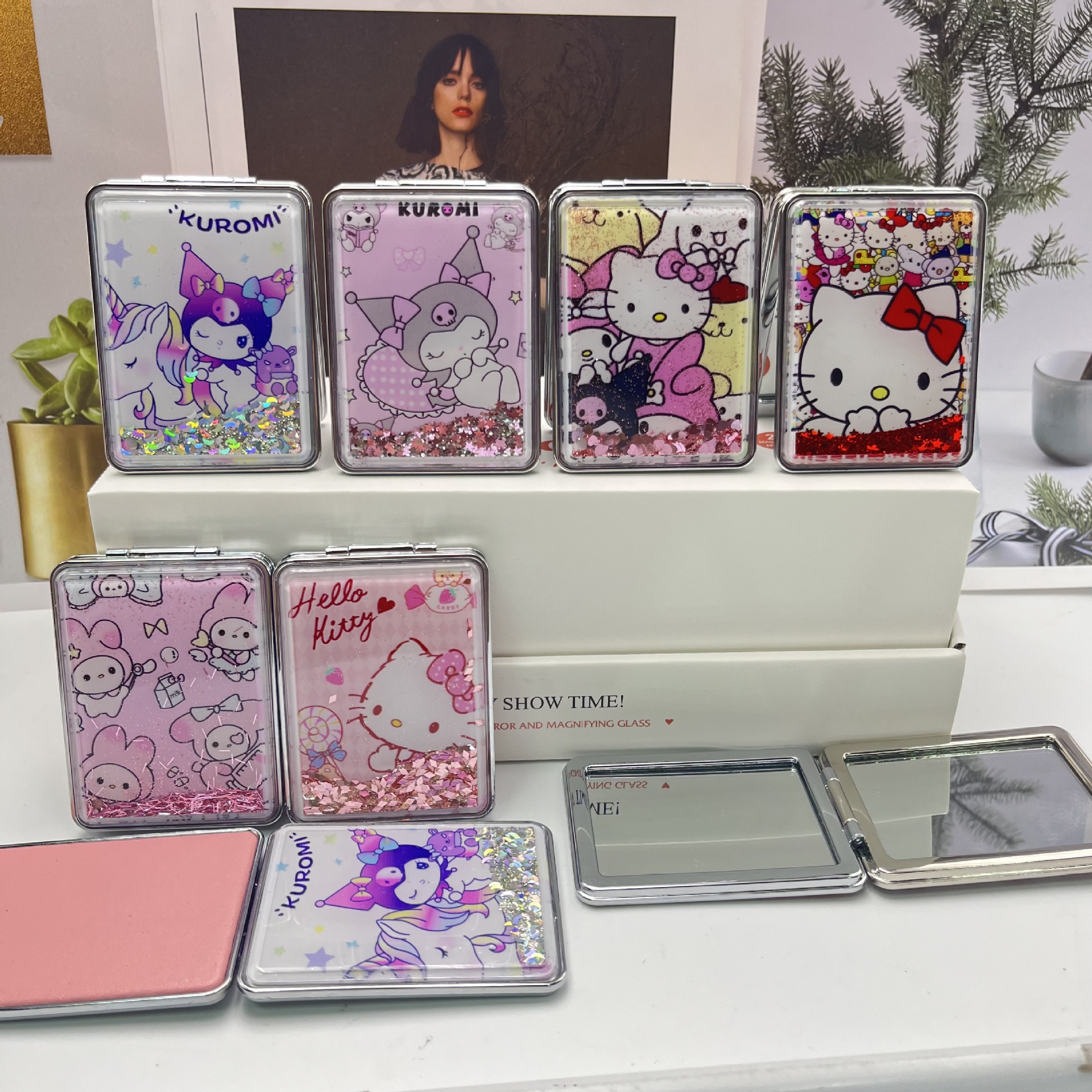 かわいいピンクKT猫クロミ流砂鏡金粉亮片アンドロメダ折り畳み両面鏡化粧鏡プレゼント