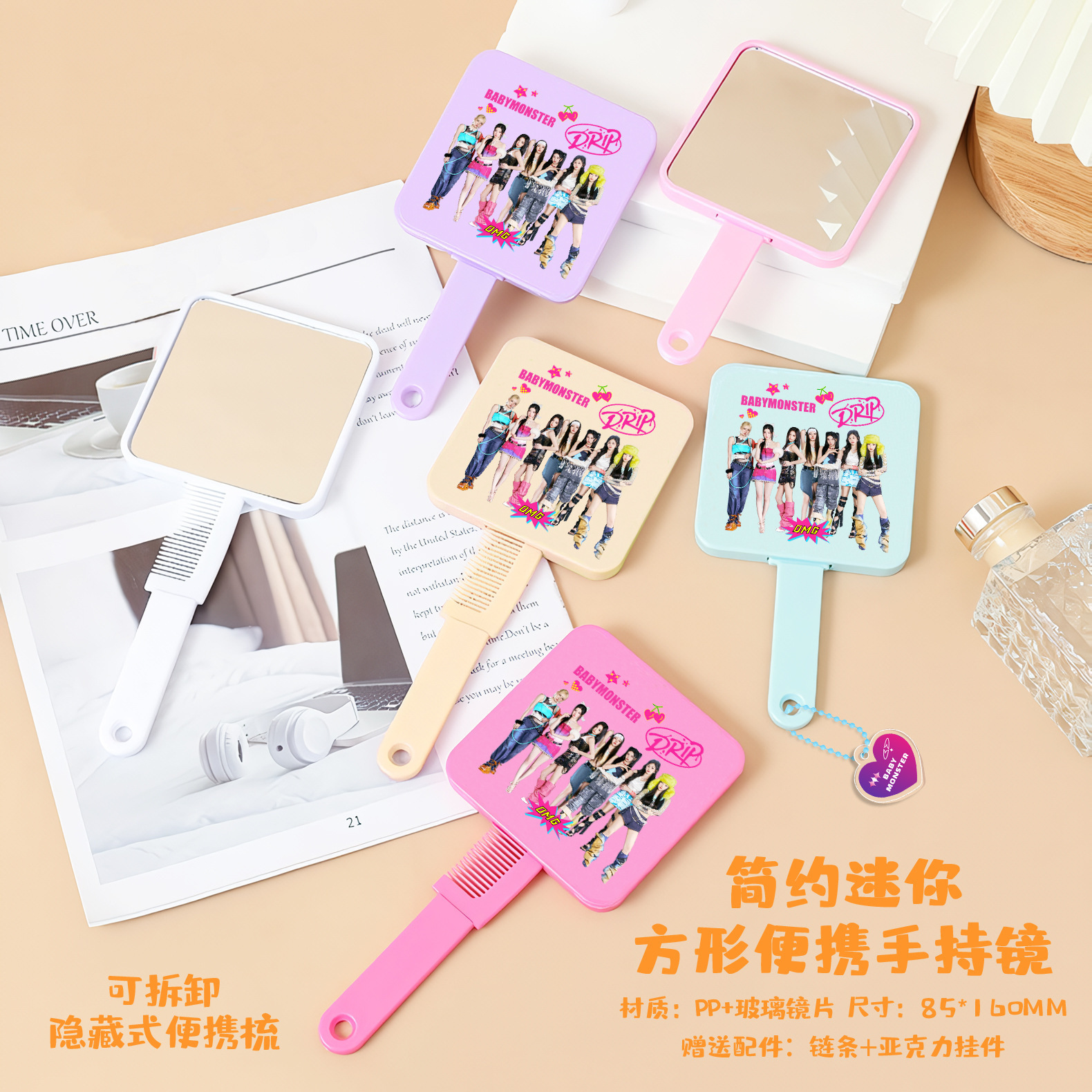 KPOP周辺鏡カスタムロゴ携帯化粧鏡化粧鏡化粧鏡取り外し可能な櫛