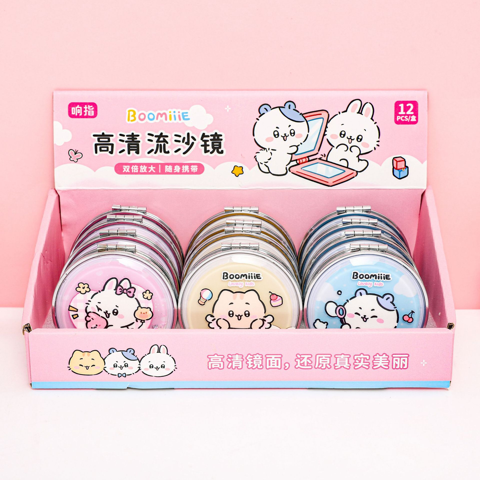 韓国版かわいい折り畳み鏡クロミロミ角型携帯両面鏡付き流砂バッグカバー化粧鏡