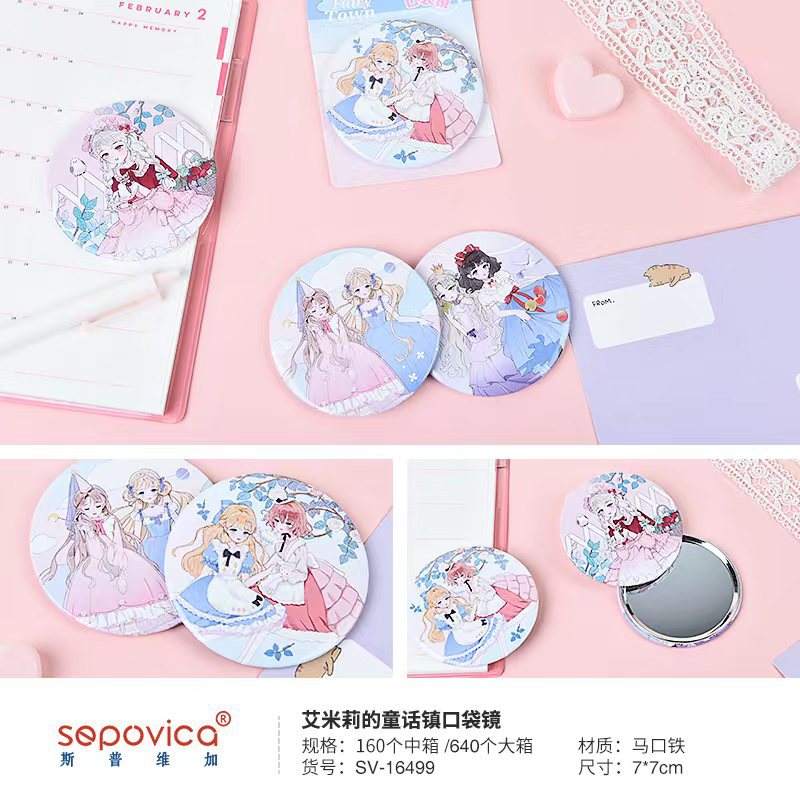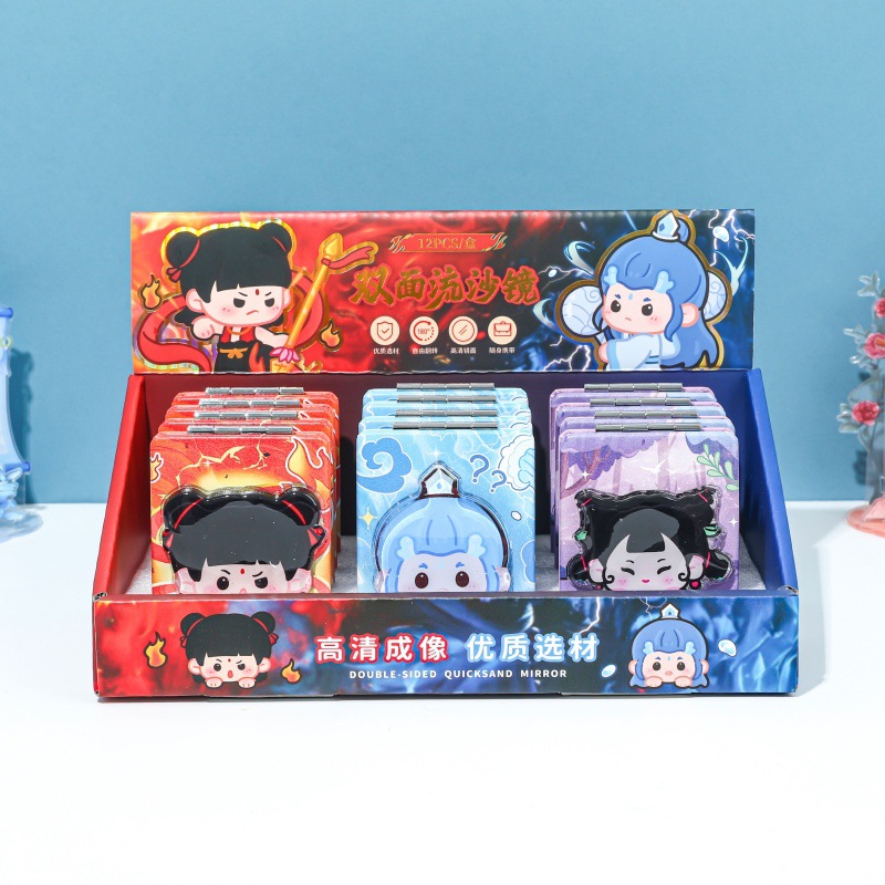 かわいいアニメ円形両面流砂鏡PU折り畳み化粧鏡学生ミニ携帯化粧鏡卸売り