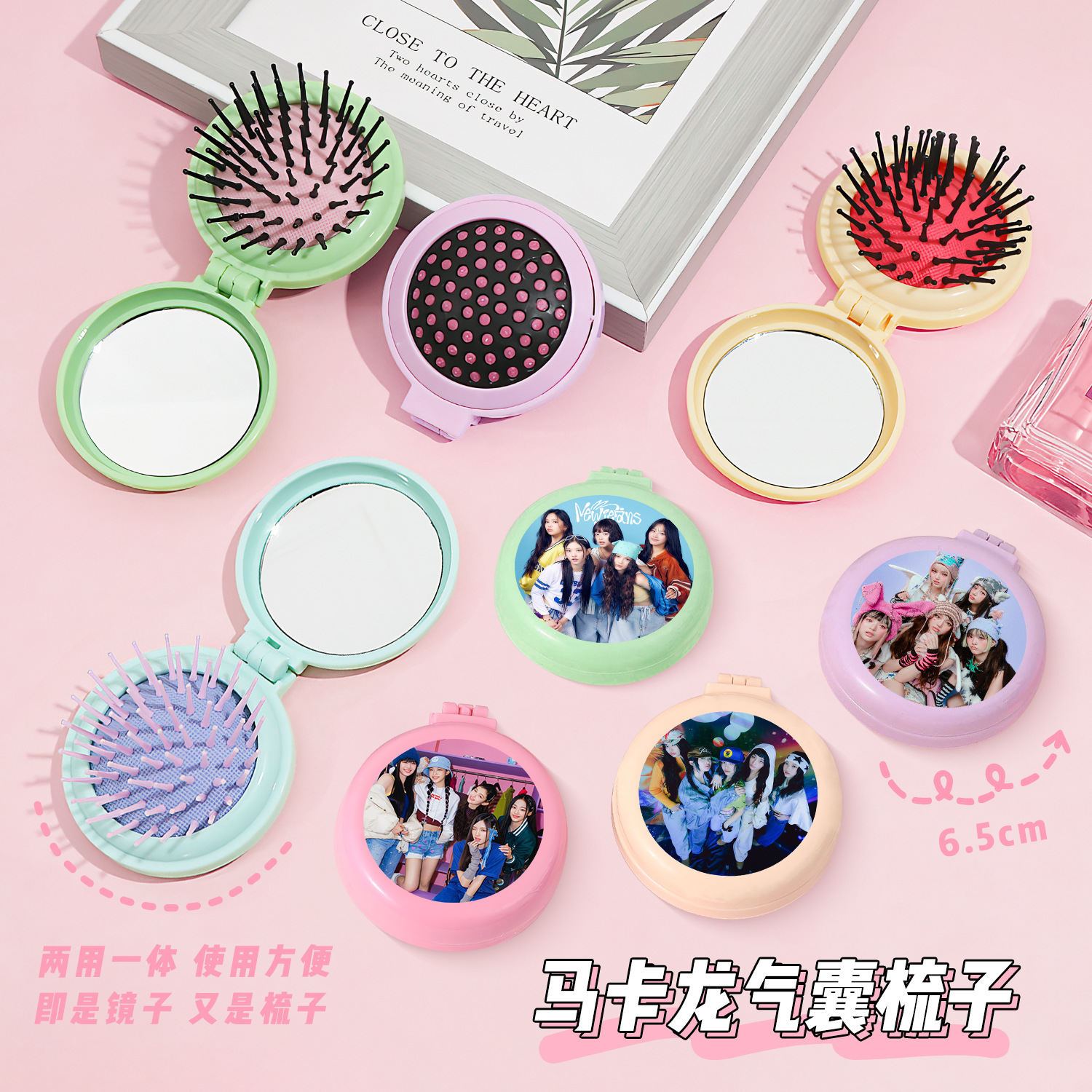 KPOP韓流アニメスターマカロンエアバッグ櫛ZB1 BTミニ手持ち鏡折り畳み丸鏡櫛