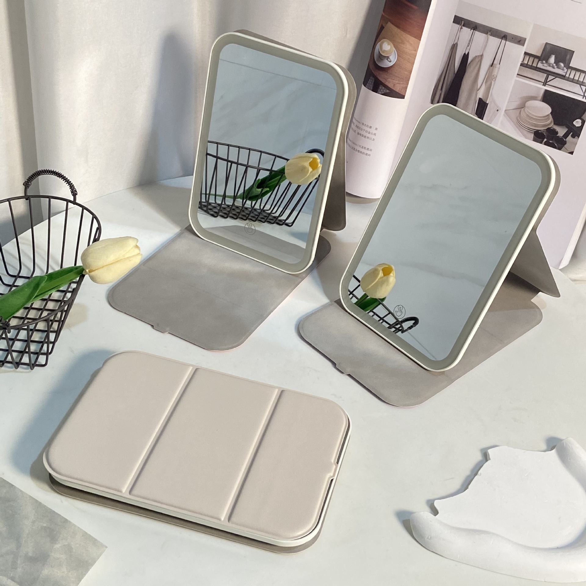 寮の学生化粧鏡充電LEDネット赤デスクトップ化粧鏡家庭用携帯美化粧デスクトップ鏡