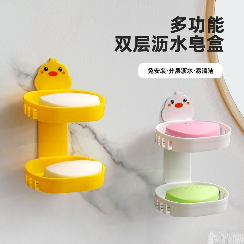 二重に水を切って石鹸の箱のトイレの小さい黄色のアヒルの石鹸は浴室の石鹸の石鹸の棚の石鹸の箱の浴室の漫画を支えます。