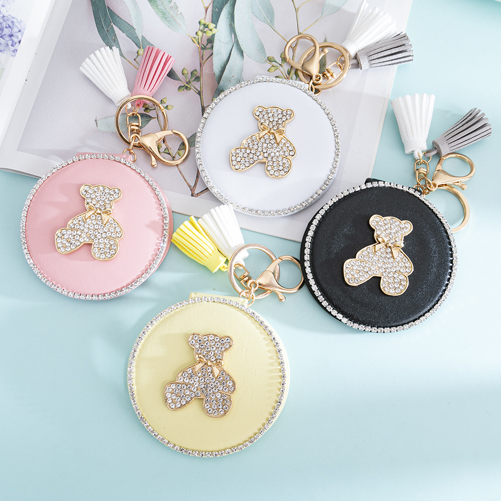 卸売り円形皮質学生小鏡かわいい漫画熊流蘇携帯化粧鏡キーホルダー