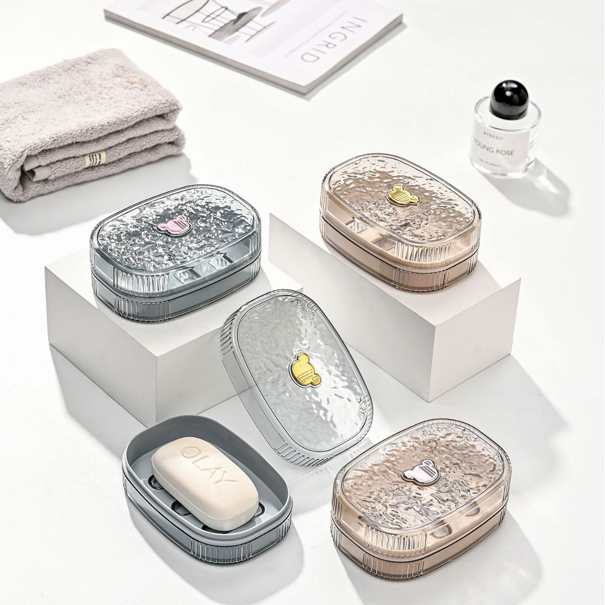 縦紋熊浴室石鹸ケーストイレ氷河紋石鹸ケース物置棚蓋付置物式石鹸ケース石鹸ケース