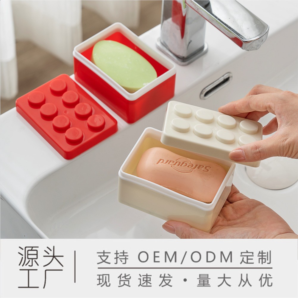 ポータブルクリエイティブ石鹸ボックス積み木旅行石鹸ボックス防水蓋付きプラスチックボックスシンプルスポンジ吸水石鹸ボックス