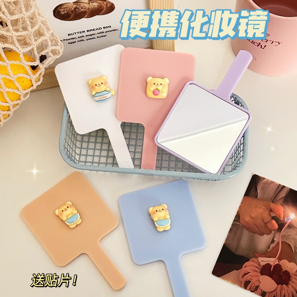 新作クリエイティブミニ化粧鏡かわいい熊鏡高颜値少女心ハンドル鏡が小さな鏡を持っている