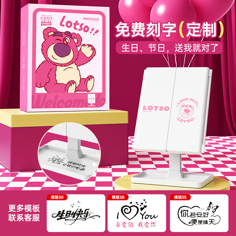 DC003-14 ストロベリーベア化粧鏡デスクトップライト付きデスクトップ折りたたみ拡大スマートフィルインライト化粧鏡
