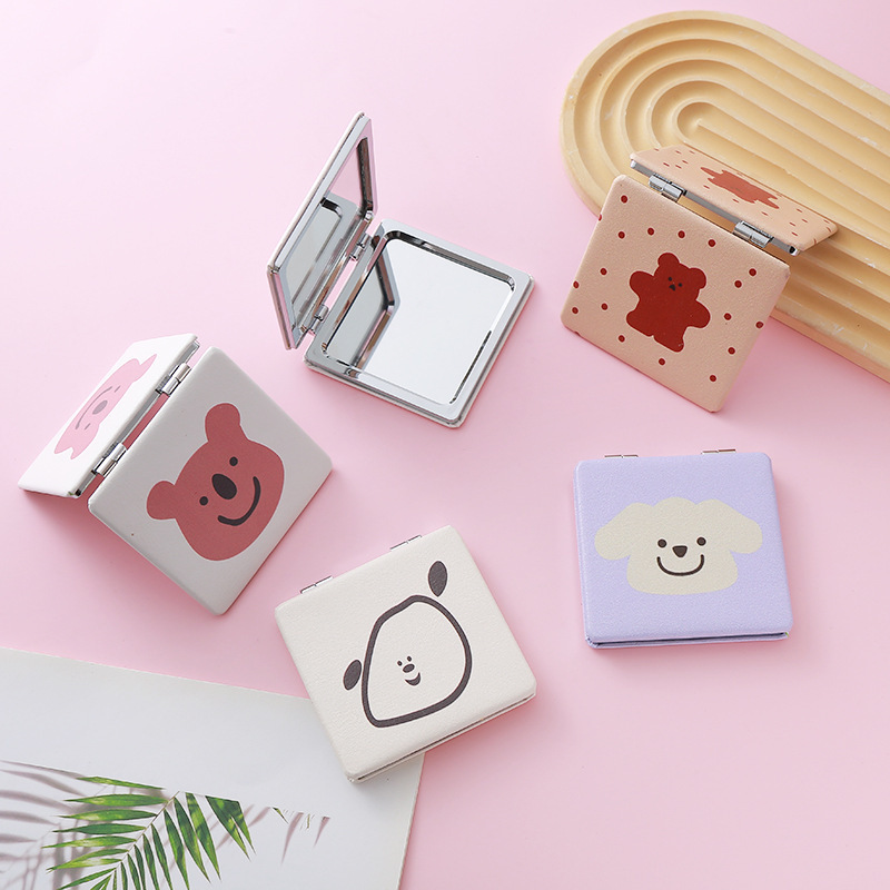 ポータブルミニ化粧鏡波点熊折り畳み小鏡かわいい携帯化粧鏡角型小鏡