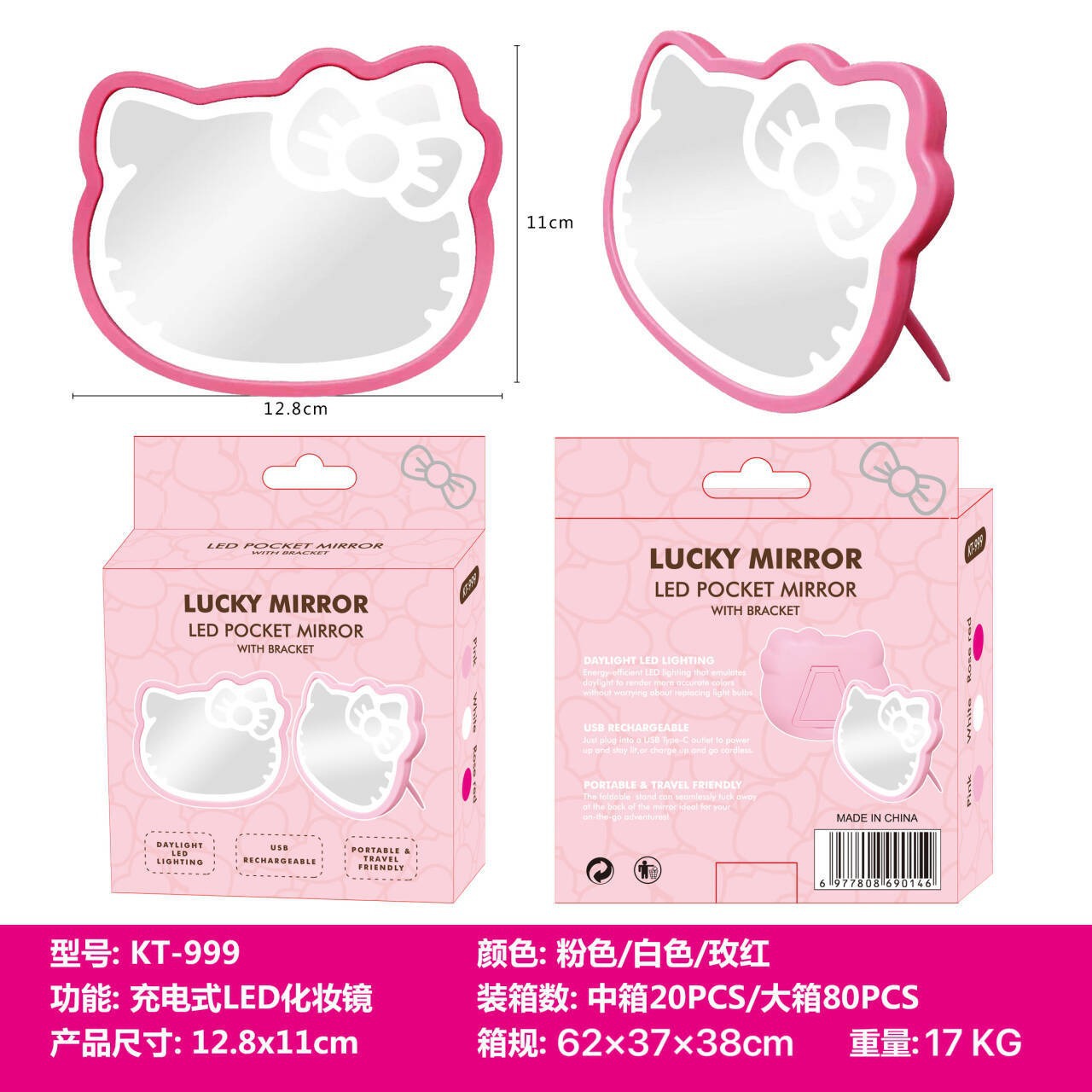 新しいアニメkt猫充電式LED化粧鏡台鏡デスクトップかわいい携帯化粧鏡ライト付き美化粧鏡