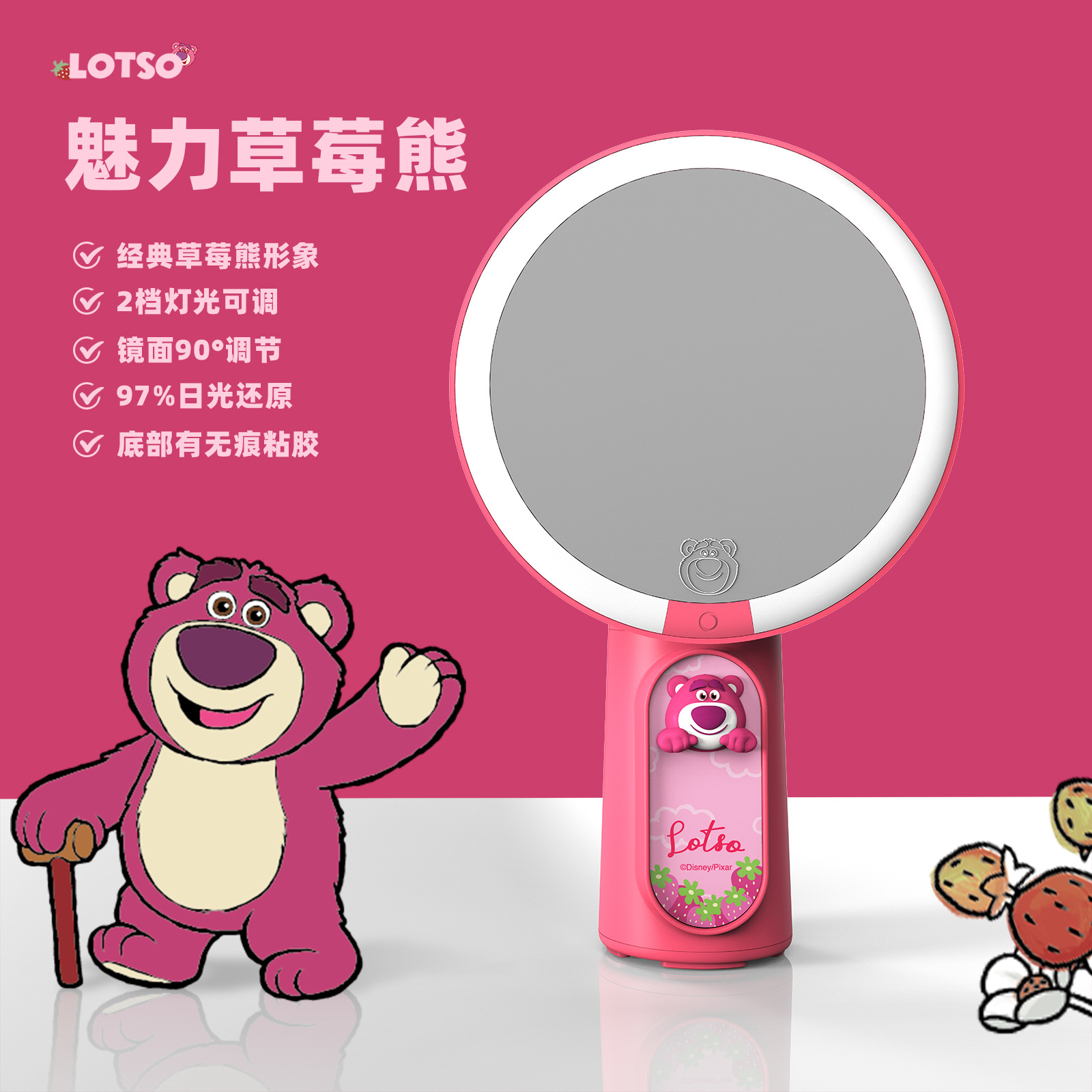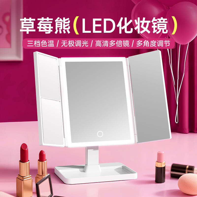 いちご熊LEDデスクトップライト付きデスクトップ化粧鏡化粧鏡化粧補光寝室ネット赤寮携帯