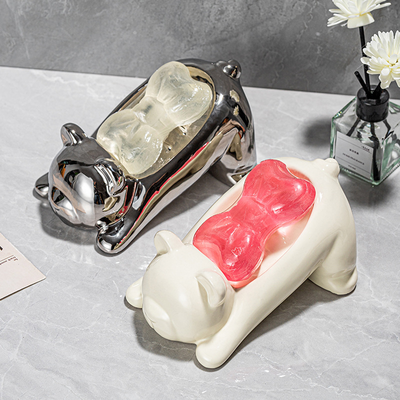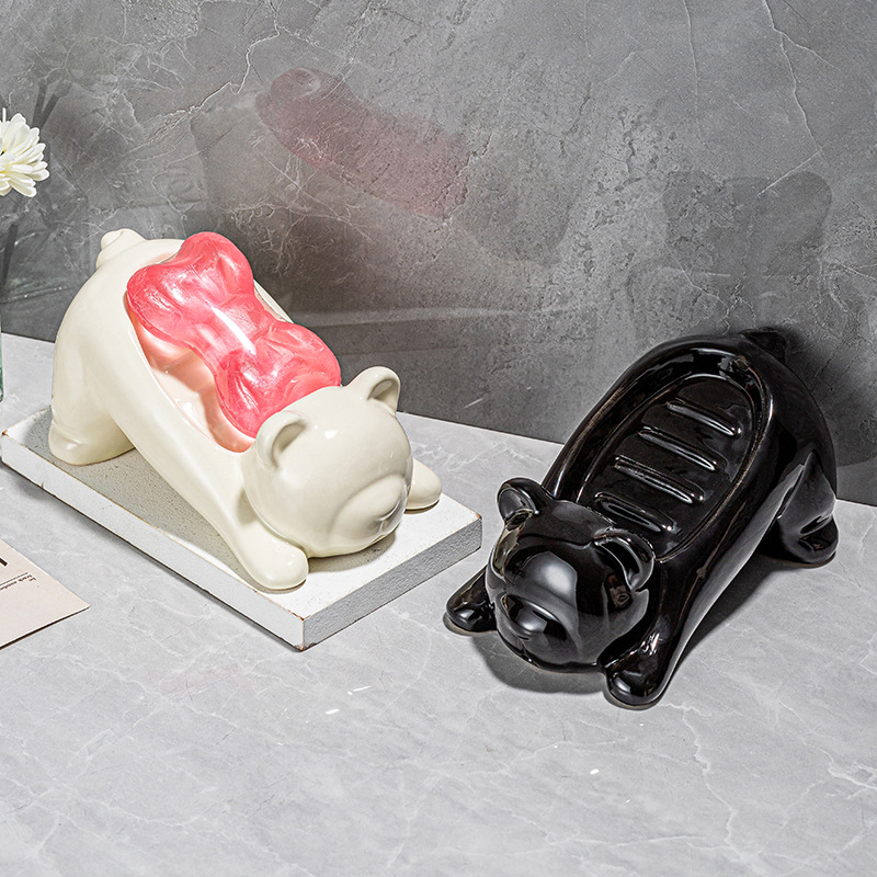 陶磁器の熊の石鹸の箱の浴室のアイデアは水の石鹸の箱のトイレの洗面台の家庭の高級な軽い贅沢な石鹸の棚を切ります。