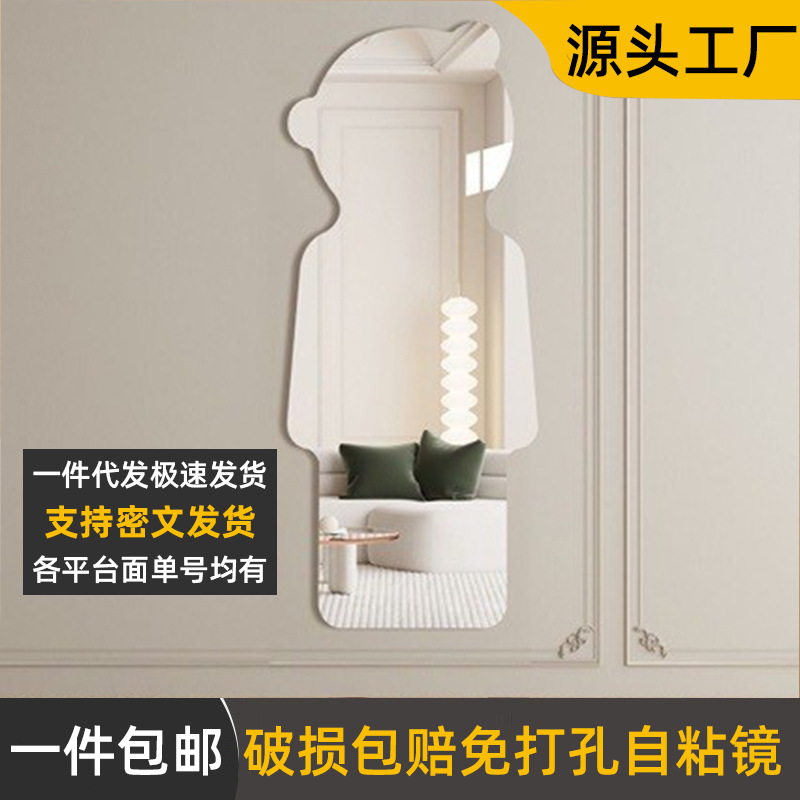 全身鏡異形熊防爆着鏡壁掛け式家庭用無枠自己接着試着鏡ins風装飾鏡
