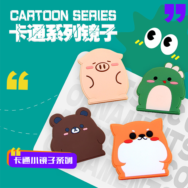 小さい鏡の卸売りのpvcの柔らかいゴムの化粧の鏡は携帯型の小さい鏡の漫画のかわいい熊の鏡の現物を持ちます。