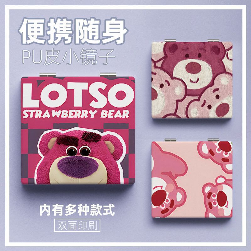 お嬢様のイチゴ熊の携帯型折り畳み式化粧鏡シンプルな男女学生寮の両面ミラー