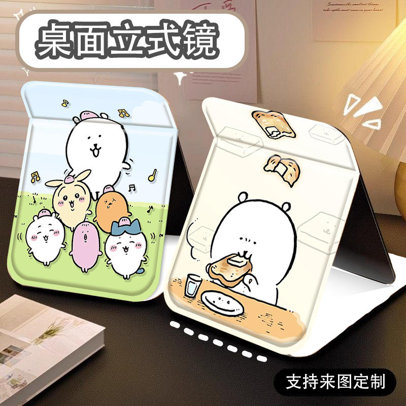 漫画の自虐的なクマの折りたたみ化粧鏡収納学生ポータブル寮デスクトップデスクトップポータブル化粧鏡